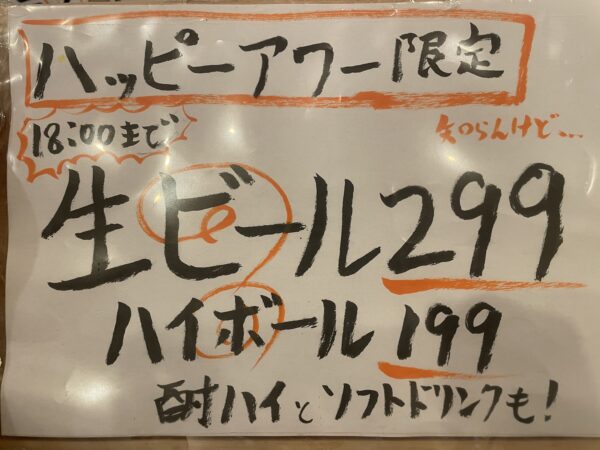 ひっそりと始めてたハッピーアワーがシンプルにドリンクのハッピーアワーに生まれ変わりました!