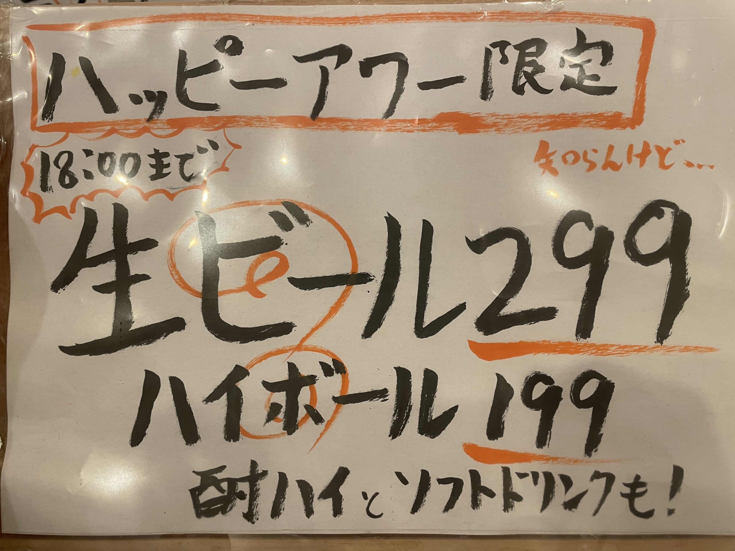 ※18時まで、フード2オーダー制でお願いしてます(日、祝除く)